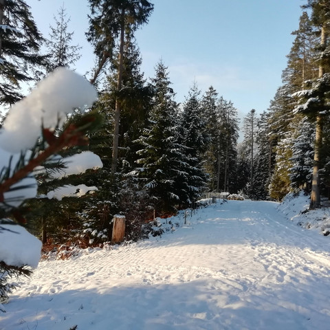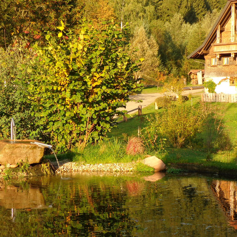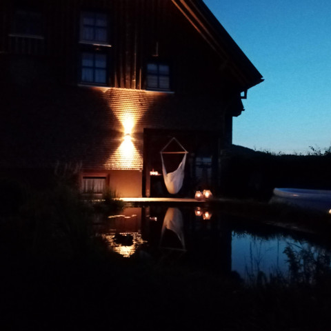 Abseits von jedem Verkehrslärm liegt unser Haus auf einer Anhöhe umgeben von Wiesen direkt am Waldrand.